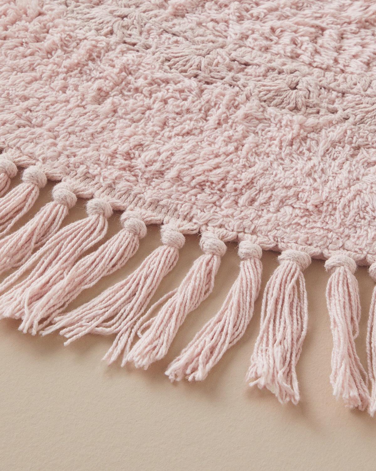 Falbelo Постелка За Баня С ресни Памучен 90x90 cm Розов (000000010042981002)