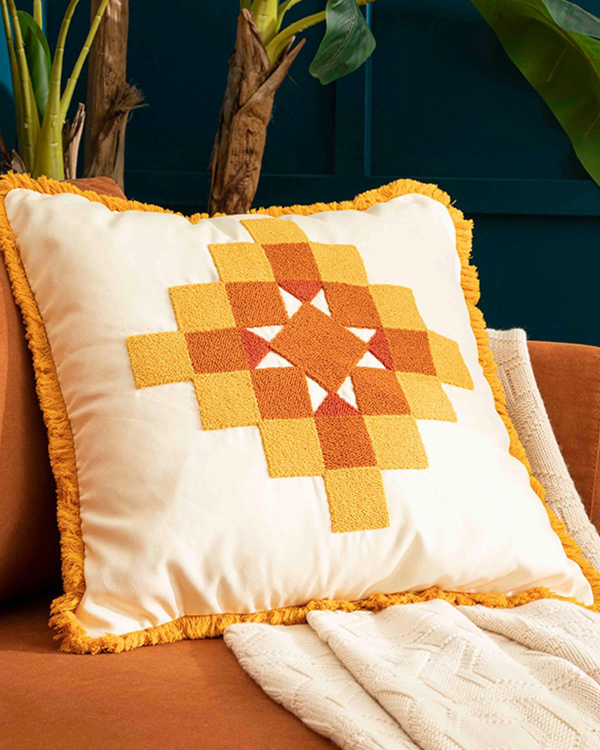 Abrazo Голяма Декоративна Възглавница Бродерия с перфорация 55x55 см Екрю (000000010037147001)