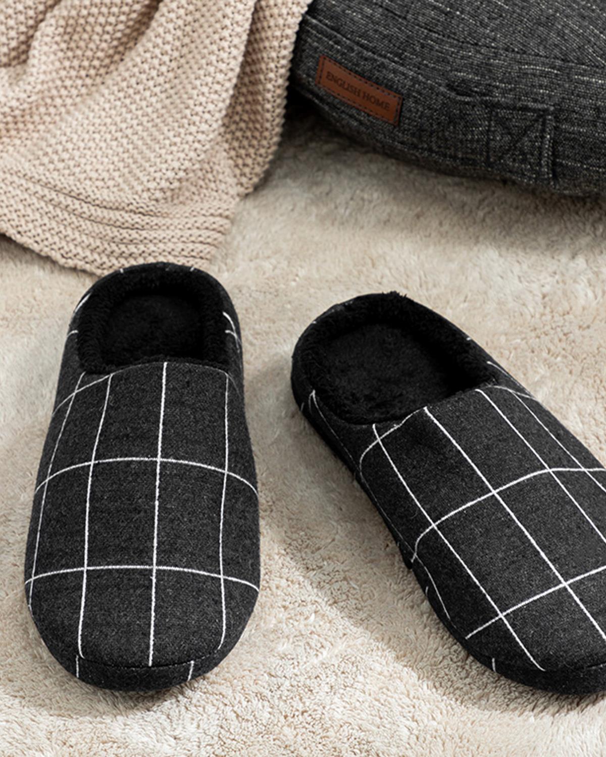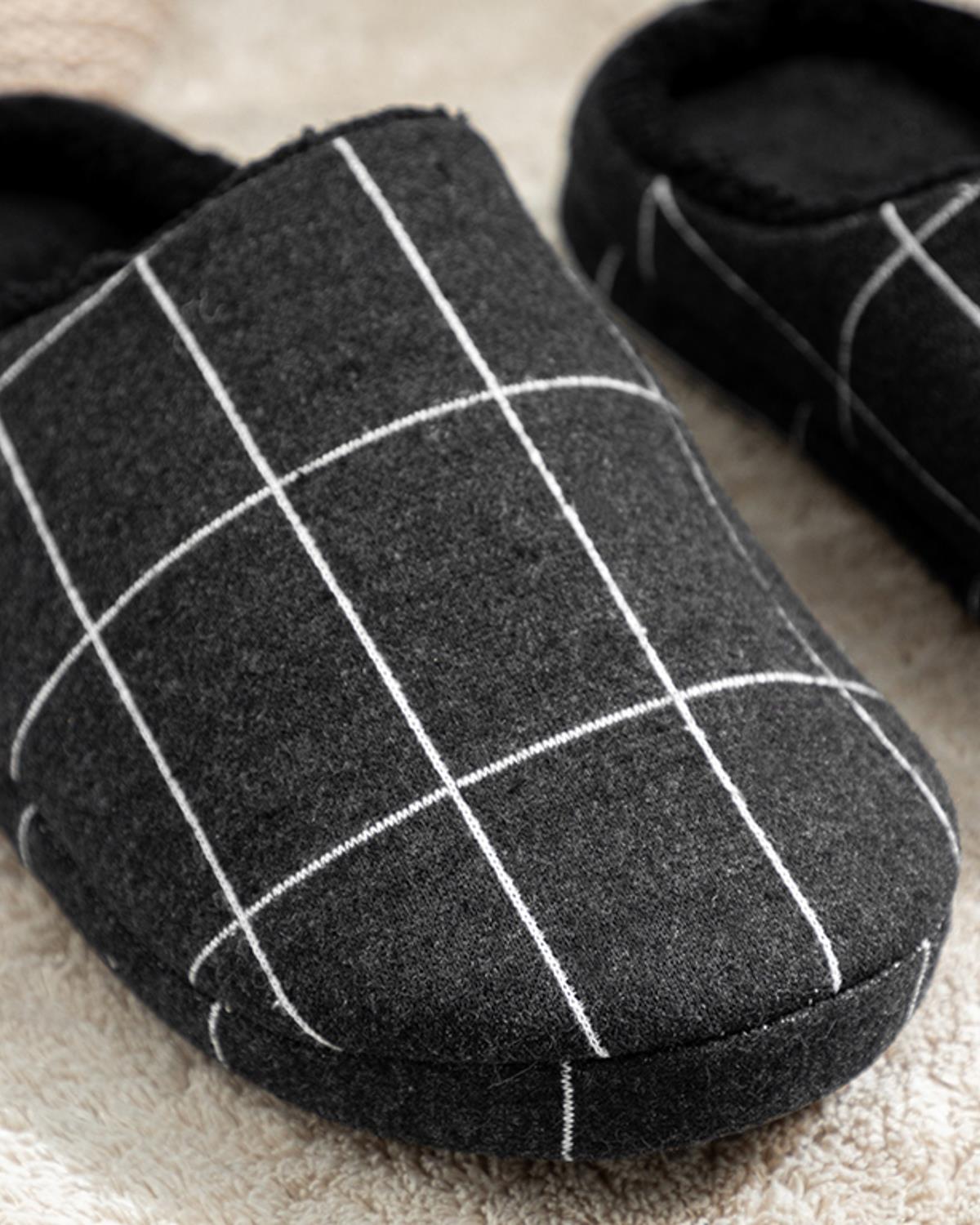 Plaid Lines Пантофи За Дома Мъжки, Черно, 42 (000000010037169002)
